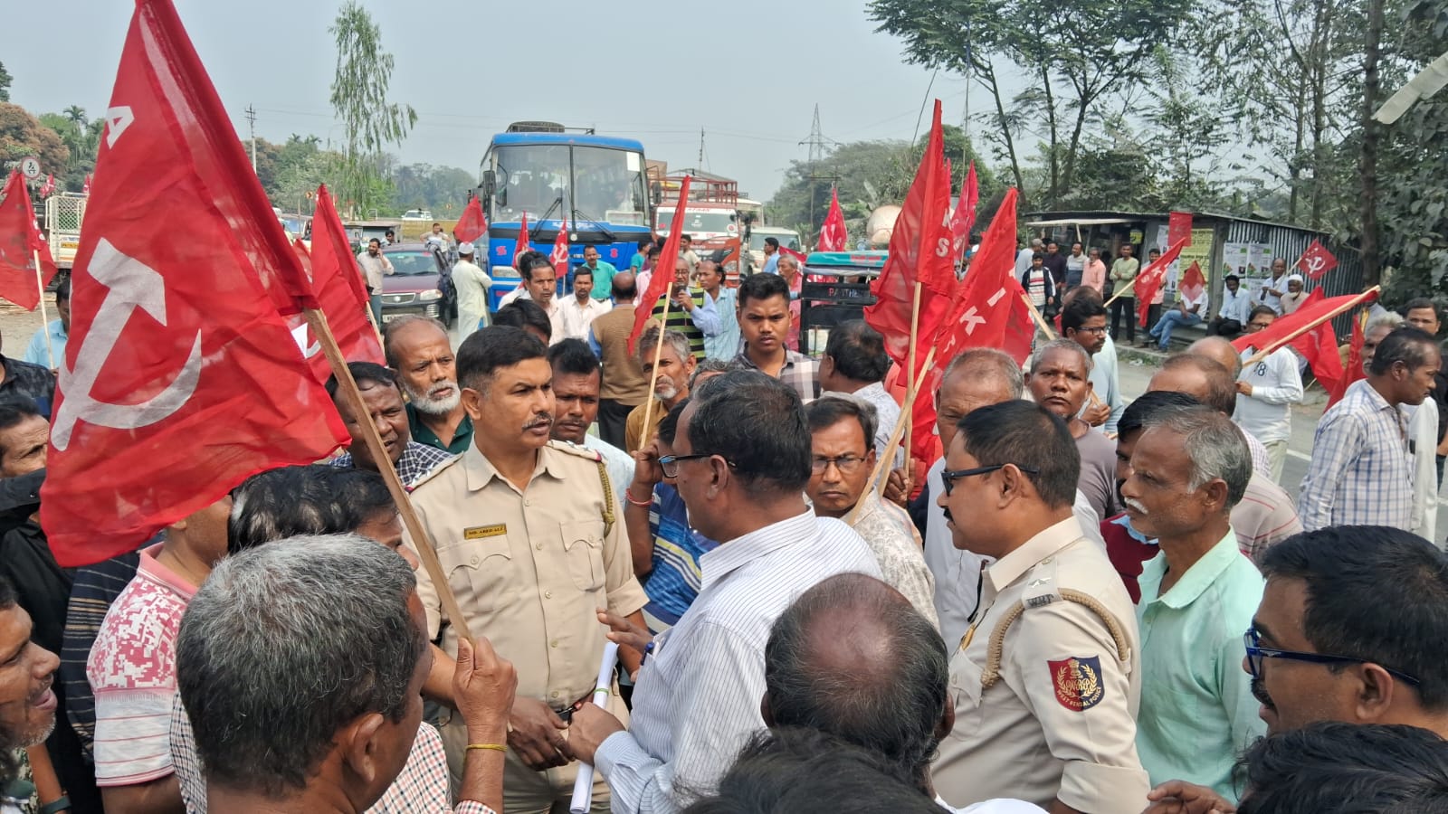 আলুর ন্যায্য মূল্যের দাবিতে কৃষক সভার নেতৃত্বে জাতীয় সড়ক অবরোধ