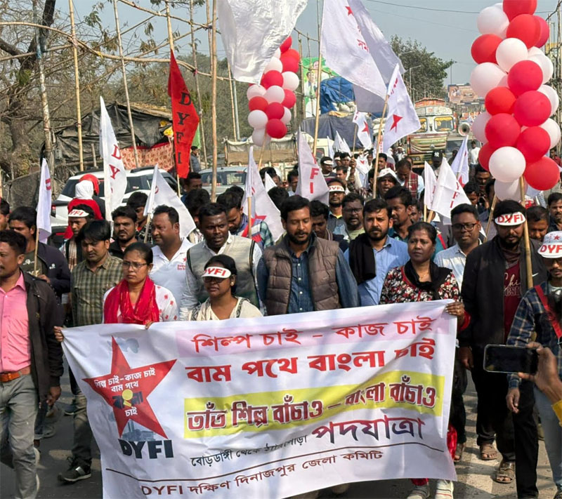 এসএফআই নেতা প্রণয় কর্য্য়ী সহ বর্ণনা মুখার্জি, আকাশ কর, অনিরুদ্ধ চক্রবর্তী |