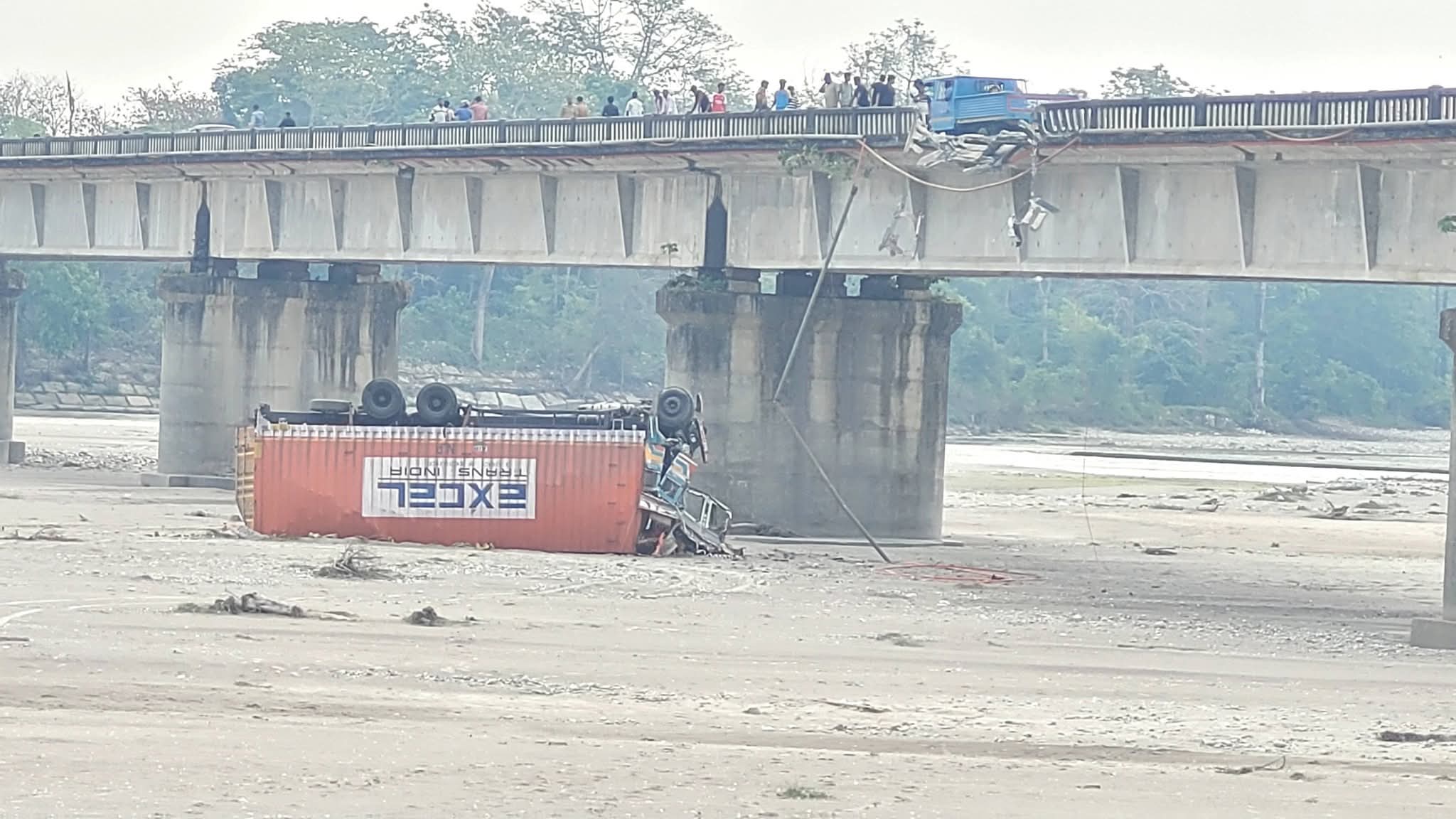 তোর্সা সেতুর রেলিং ভেঙে নদীতে কন্টেনার, মৃত চালক