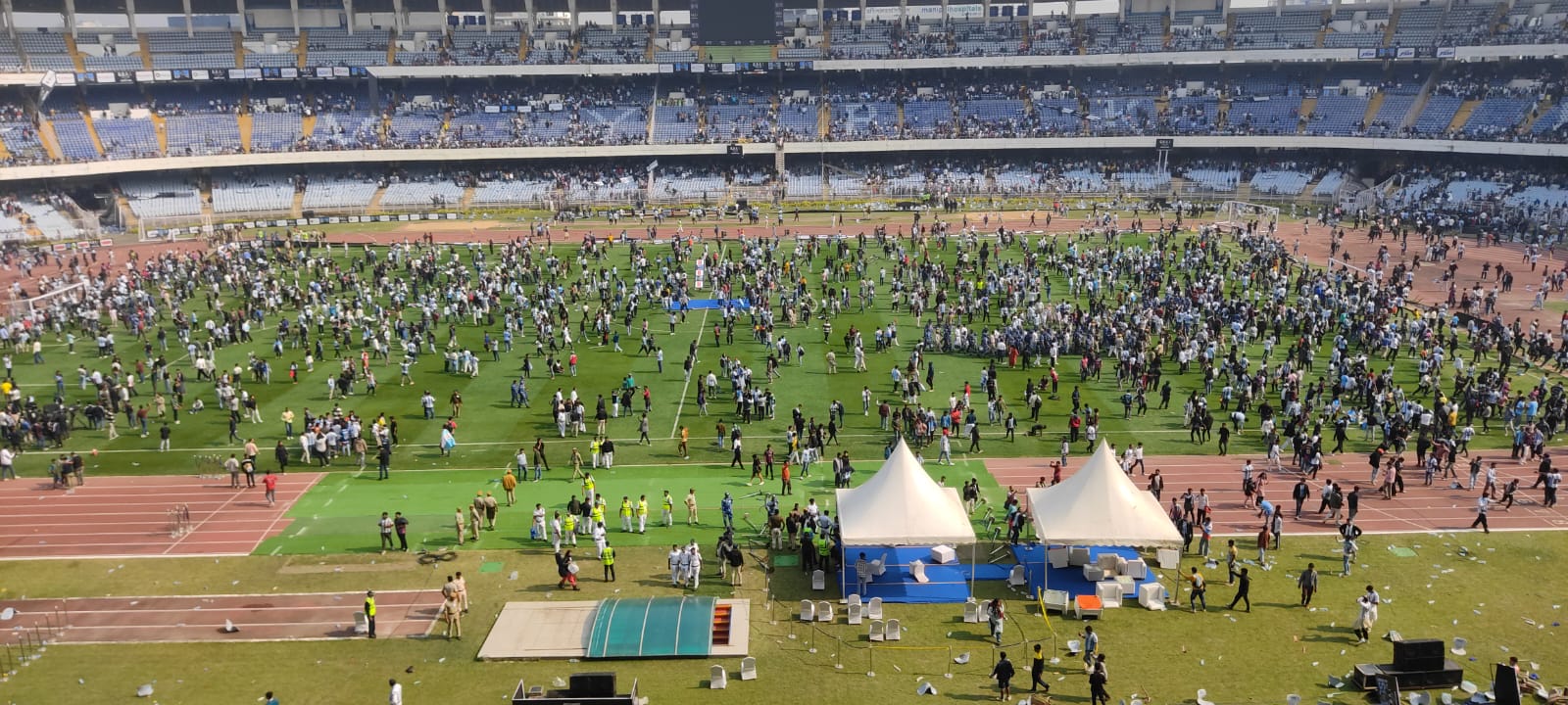 মেসিকে দেখতে না পেয়ে মাঠে দর্শকদের বিক্ষোভ